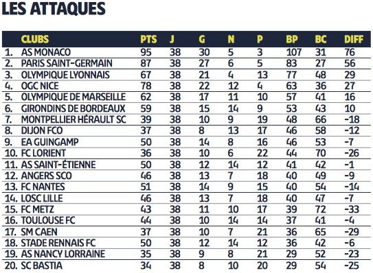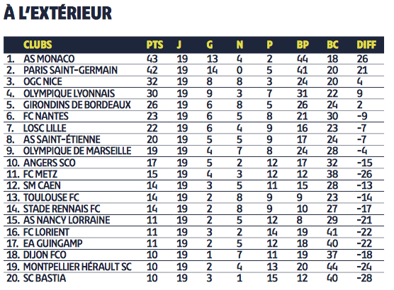 Le club a mieux réussi son parcours à l’extérieur puisque nous avons une belle 5ème place derrière les quatre équipes de tête du classement final (Monaco, Paris, Nice et Lyon).