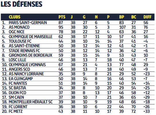 Concernant celui de la défense, les Girondins ont une 8ème place avec 43 buts concédés. Voici le détail ci-dessous.