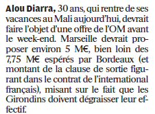révèle que l’OM devrait faire une offre de 5 M€ pour s’attacher les