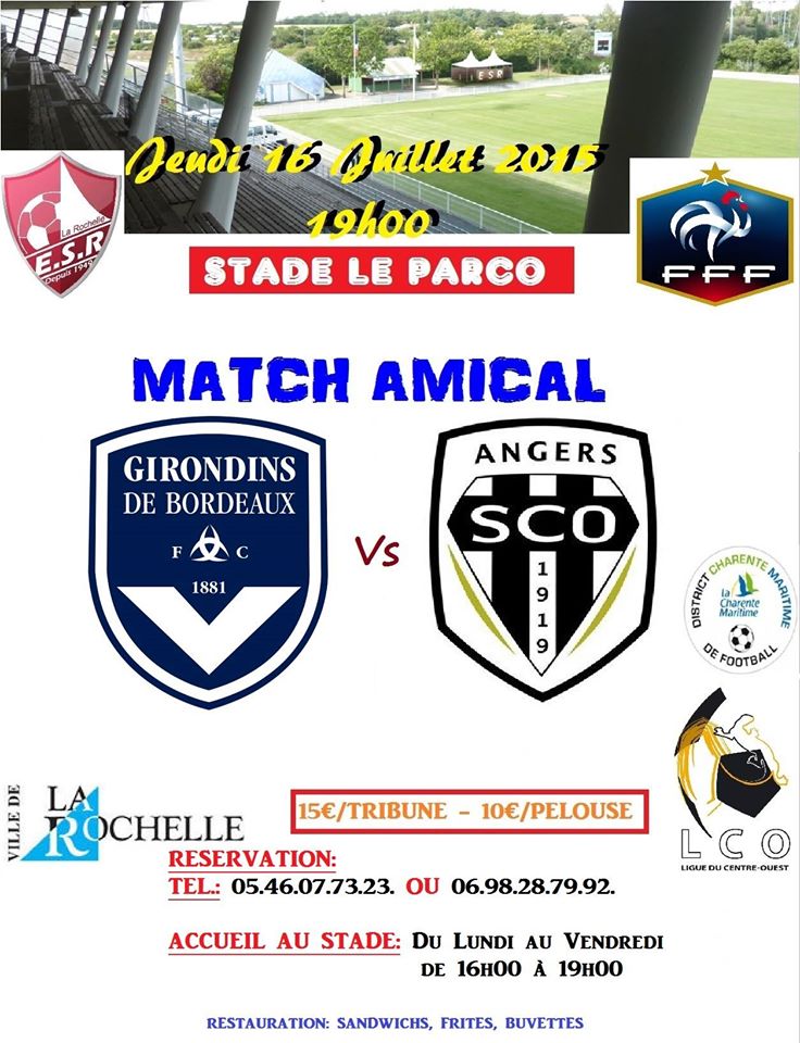 Morgan, sur nos réseaux sociaux, a partagé les informations concernant la réservation du match amical entre les Girondins de Bordeaux et le SCO d’Angers, qui aura lieu le 16 juillet prochain à La Rochelle (19 heures).