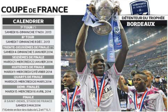 Romain Romain 08/08 - 10h45 [CDF] Les dates dévoilées Bordeaux, qui devra défendre son titre remporté en fin de saison dernière, découvre les dates des matches de la Coupe de France 2013-2014. Les voici. L’Equipe