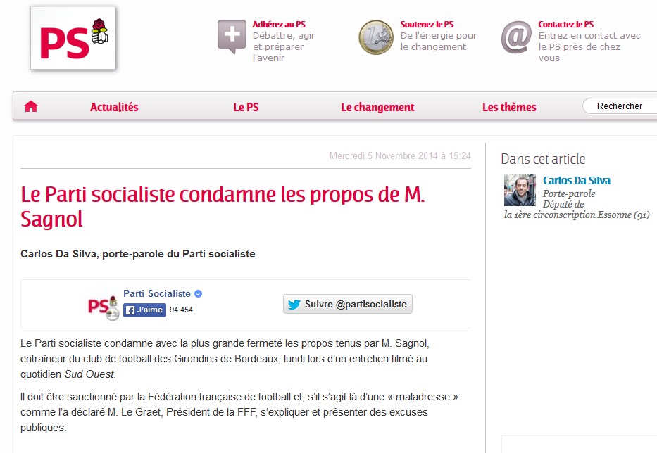 Décidément, c’est à celui qui ira le plus loin. Le Parti Socialiste semble s’être trouvé de nouvelles priorités puisqu’aujourd’hui un communiqué est sorti sur ce qui est devenu “l’affaire Sagnol”. Voici le communiqué ci-dessous qui demande des excuses et une sanction de la FFF.