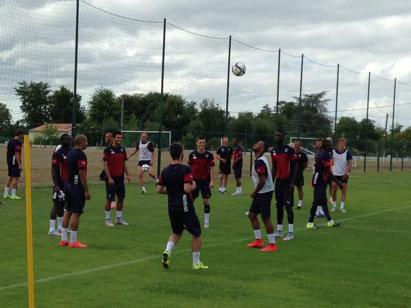 Notre équipe est actuellement présente au Haillan pour vous faire vivre la séance d’entraînement. Diego Rolan est bien présent avec le groupe mais ce n’est pas le cas de Diego Contento et Jaroslav Plasil. Ce dernier doit toujours être mis au repos à cause de sa petite tendinite tandis que le latéral gauche est rentré également touché du stage en Autriche et doit donc être préservé. Les joueurs ont ensuite travaillé en deux groupes séparés : les blancs et les oranges. Les blancs bossent avec Willy Sagnol et il s’agit surement des titulaires pour le match de demain : Mariano, Pallois, Yambéré, Poundjé, Sertic, Chantôme, Jussiê, Touré, Saivet et Diabaté. A noter que le coach bordelais donne de la voix. Les joueurs ont fait des ateliers avec les piquets (passes à trois , dribbles, centres…)