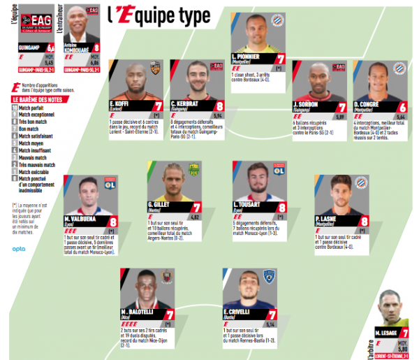 Enzo Crivelli a été buteur sur son seul tir lors du match Rennes-Bastia, il a également effectué une passe décisive. Il figure donc à la pointe de l’attaque du onze type de l’Equipe. Voici ce qui justifie ce choix. “Le buteur bastiais, prêté pour la saison par Bordeaux, a signé son sixième but en L 1 ce week-end, son cinquième à l’extérieur. Seule une de ses réalisa- tions n’a pas rapporté de points au club corse (Lyon-Bastia, 2-1, 12e journée). L’international Espoirs, qui pèse 38 % des buts de son équipe, a aussi montré ses qualités collectives en délivrant une passe décisive à Gaël Danic quatre minutes après avoir ouvert le score. Étrillé à Montpellier (0-4), Bordeaux doit attendre avec impatience le retour de prêt de son joueur”.