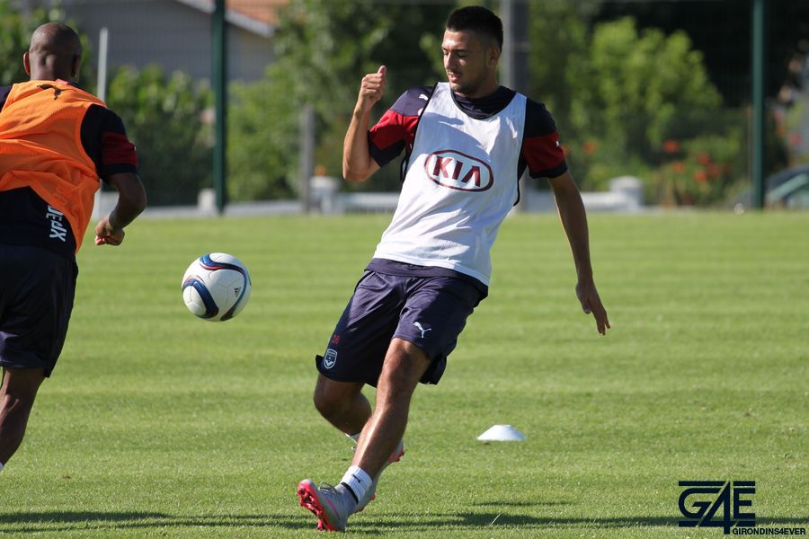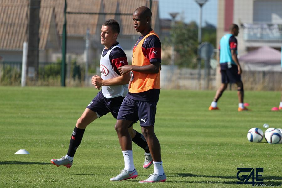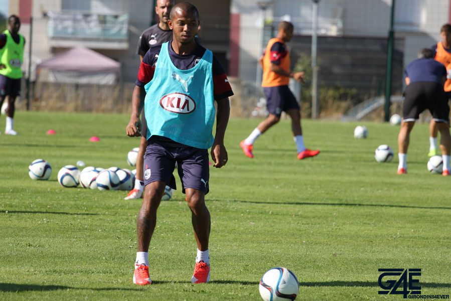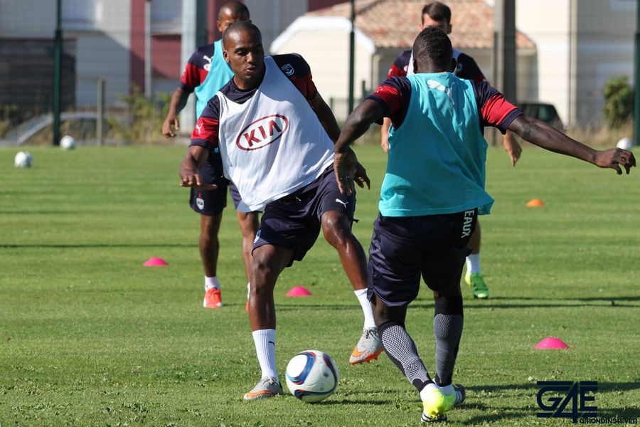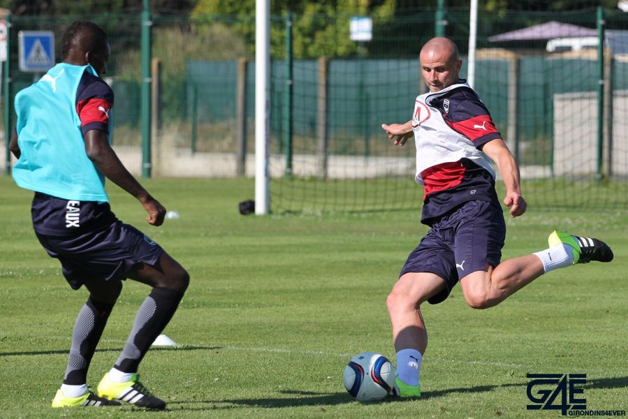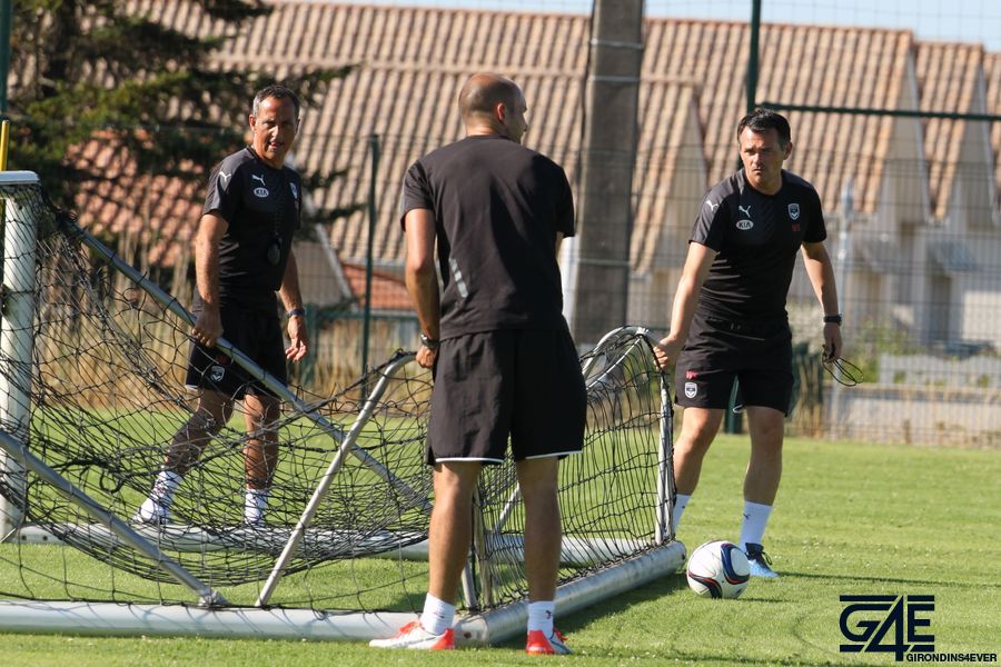 Les joueurs se sont échauffés pour les premières minutes lors d’un toro avec plusieurs touches de balle autorisées. Le but était de faire le maximum de passes et les équipes se challengeaient tout au long de cet exercice pour savoir celle qui en ferait le plus. C’est principalement Sandy Guichard et Sylvain Matrisciano qui ont donné de la voix, Willy Sagnol arrivant pendant cet exercice sur les terrains. A noter un très beau petit pont de Mariano sur Nicolas Pallois… Peut-être un des derniers ?