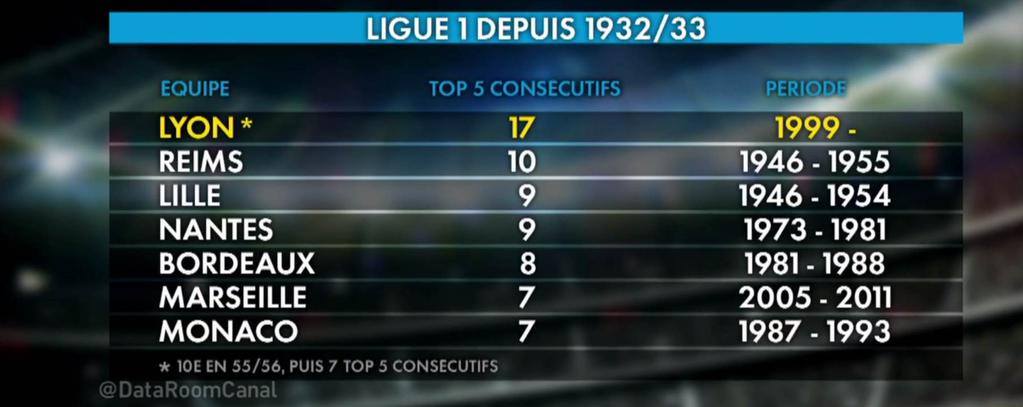 consécutifs. Bordeaux se classe à la 5ème position avec 8 tops 5.