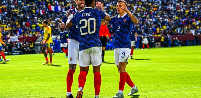 Je pense que Didier Deschamps va mettre dans les meilleures dispositions les quatre de devant. Ça veut dire que derrière et au milieu ça va être costaud. On parlait de défense, ‘oui mais la défense des Bleus…’ Je vous dis que s’il arrive à mettre à gauche Lucas Digne, Saliba, Upamecano et Jules Koundé, derrière ça va être costaud. Les deux latéraux ne vont pas autant monter qu’un Malo Gusto et Théo Hernandez. Si tu mettais Théo Hernandez et Malo Gusto avec les quatre de devant, ce serait impossible et tu prendrais des vagues comme le Barça, comme certains clubs. S’il arrive à mettre ces quatre défenseurs avec Rabiot, Tchouameni ou peut-être Manu Koné, et avec les quatre attaquants, à ce moment-là l’Equipe de France sera pour moi, bien équilibrée. Les quatre de devant feront le spectacle.”