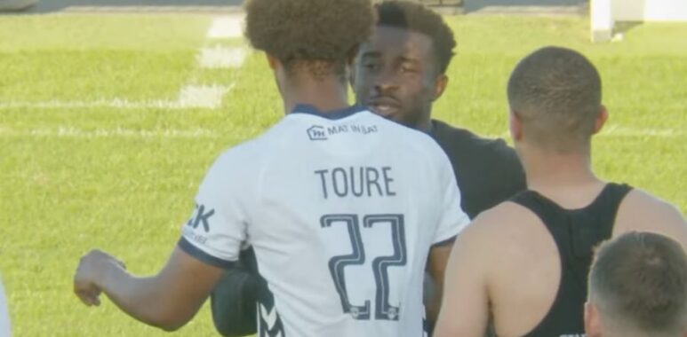 Puis, il évoqua la première entrée sur le terrain de l’ancien Champion de France avec Monaco, et Champion d’Europe avec son ancien club allemand, Almamy Touré, qui est entré en seconde période sous nos couleurs.