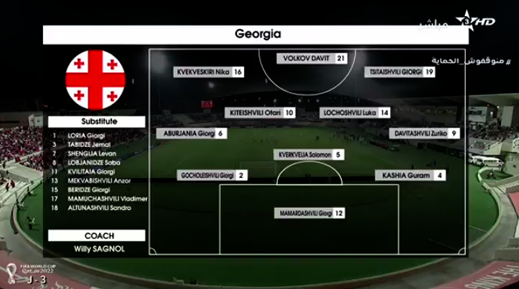 La Maroc a plutôt bien commencé cette rencontre puisque en une demi heure, elle menait déjà sur le score de 2-0 (buts de Youssef En-Nesyri à la 6ème, et Hakim Ziyech à la 29ème). A la pause, c’est bien le Maroc qui mène sur le score de 2-0. Le bordelais reprit la seconde période sur le terrain. Il fut cependant remplacé à la 62ème minute par Saba Lobzhanidze. Sofiane Boufal va aggraver le score à la 72ème minute de jeu (3-0).