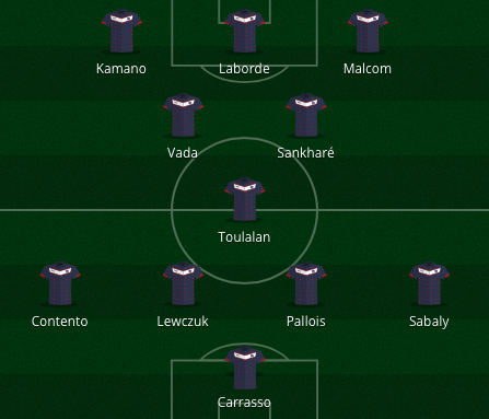 Carrasso – Sabaly, Pallois, Lewczuk, Contento – Toulalan, Sankharé, Vada – Malcom, Kamano, Laborde