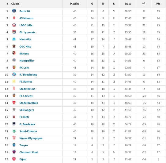 Si l’on prend le classement de l’année civile 2021, les Girondins se classeraient 17èmes sur 22 avec donc 10 victoires, 10 matches nuls et 20 défaites. Ils ont marqué 40 points en tout ce qui reste très faible. Mais ce qui marque le plus dans ce classement est la différence de buts. On peut voir que les Girondins sur 2021 ont inscrit 54 buts pour 79 buts encaissés et une différence de buts de -25. Seuls Dijon (relégué en Ligue 2) et Saint-Etienne (actuellement dernier de Ligue 1) font pire que les Girondins sur la différence de buts. Mais c’est aussi et surtout la plus mauvaise défense de Ligue 1 sur l’année 2021 avec ses 79 buts encaissés. Juste devant on retrouve Metz 70 buts encaissés et Saint-Etienne (69).