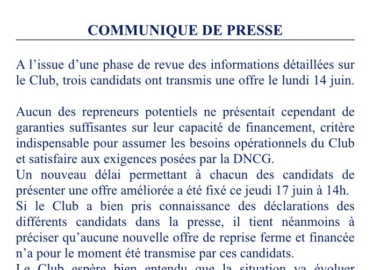 Club 17/06 - 17h51 Communiqué de presse des Girondins de Bordeaux : attente d’un projet “permettant d’assurer sa pérennité”