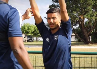 Logan Delaurier-Chaubet et Loïc Bessilé avec les pros ce matin à l’entrainement
